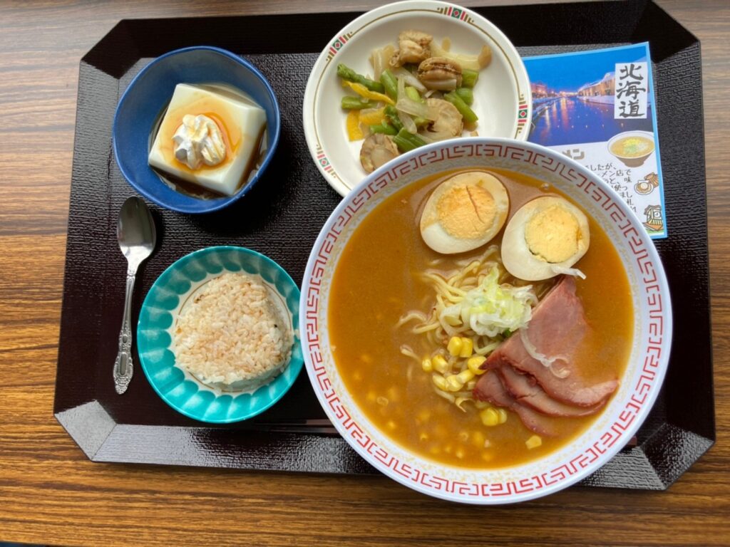 老健みさきの食事 投稿日: 2025年11月12日 お知らせ ある日の昼食です。「日本全国味めぐり」をテーマに各地の名物を献立にとりいれました。この日のメニューは北海道・味噌ラーメンです。ラーメン自体が皆さん大好きということもあって大好評をいただきました。