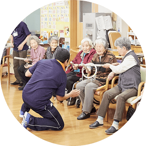 「今日はこれぐらいできた。」「明日も頑張りや。」などご利用者様同士、お互い励ましあいながら取り組んでいます。